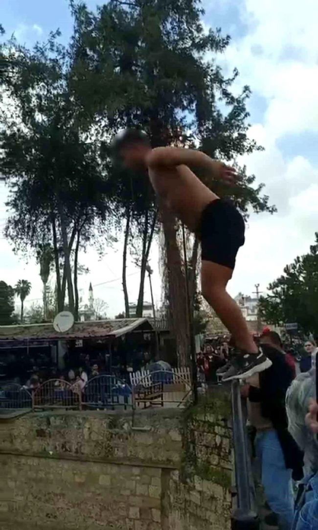 Mersin’in Tarsus ilçesinde şelale üzerindeki köprü korkuluklarından suya atlayan kişiye, polis ekiplerince idari para cezası uygulandı.