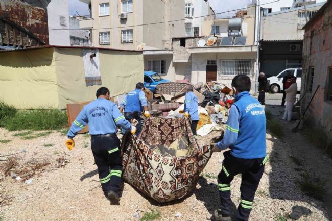 Mersin’in Akdeniz ilçesinde, sahiplerinin hayatını kaybettiği öğrenilen bir evden belediye ekipleri tarafından 1 kamyon çöp çıkarıldı.