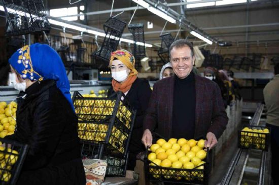 Mersin Büyükşehir Belediye Başkanı Vahap Seçer, Erdemli ilçesindeki bir narenciye paketleme tesisinde emekçi kadınlarla buluştu.